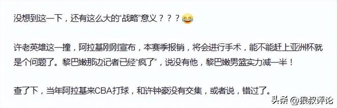 今年夏天,許鐘豪代表廣廈征戰(zhàn)亞冠的賽場(chǎng),他和黎巴嫩球星阿拉基的對(duì)抗導(dǎo)致后者缺席亞洲杯更是被不少球迷調(diào)侃,許鐘豪“神助攻”中國(guó)男籃減少了一個(gè)強(qiáng)力的競(jìng)爭(zhēng)對(duì)手。