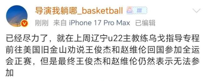 其實這也不能完全怪王俊杰等人,因為在本賽季,王俊杰已經(jīng)成為了舊金山大學(xué)的主力,這是他首個賽季擔(dān)任球隊主力,肯定需要用表現(xiàn)穩(wěn)定自己的位置。這個時候NCAA的賽程和全運會賽程沖突,王俊杰也只能拒絕繼續(xù)代表遼寧隊出戰(zhàn)了。